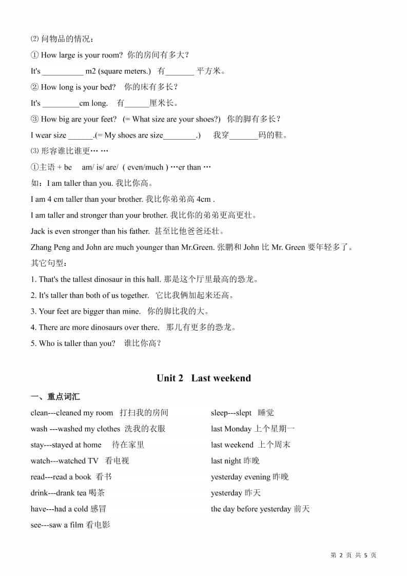 六年级下英语全册知识总结《人教版PEP》